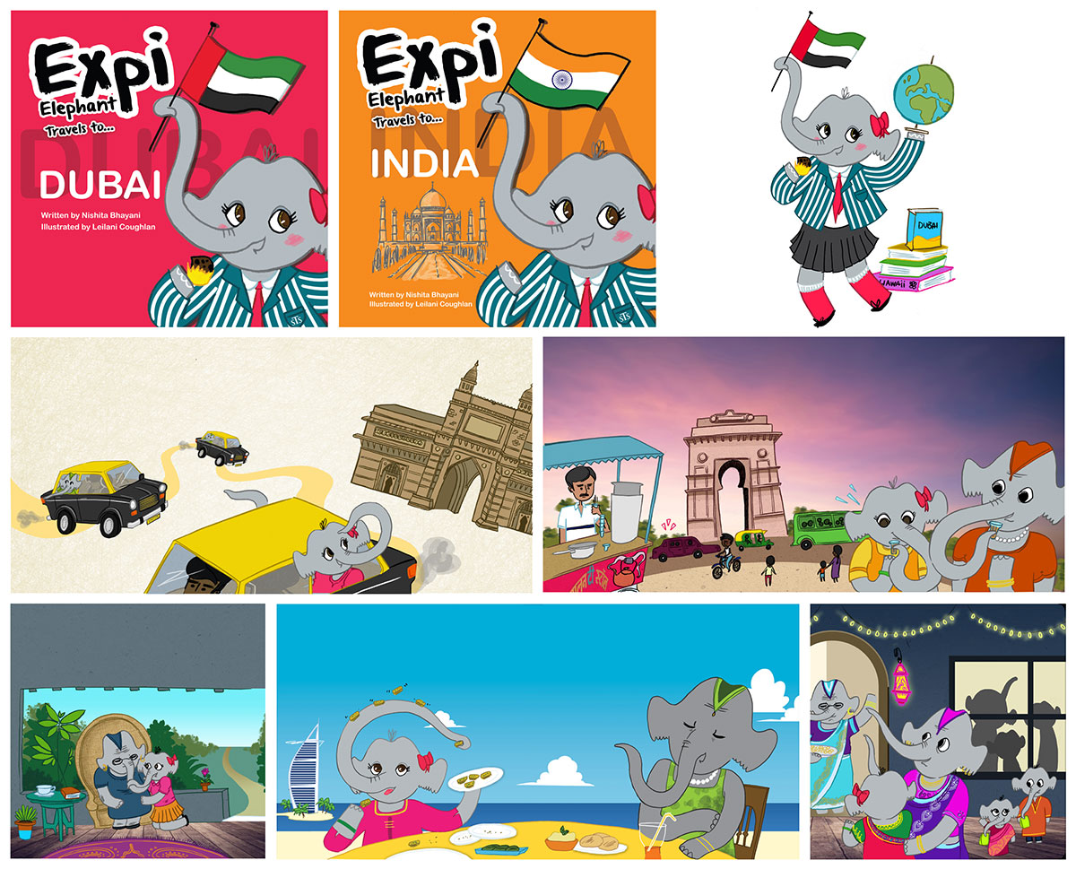 Children's book illustration and book design for the Expi Elephant series. Learn more about Expi's travels around the world at www.expielephant.com!